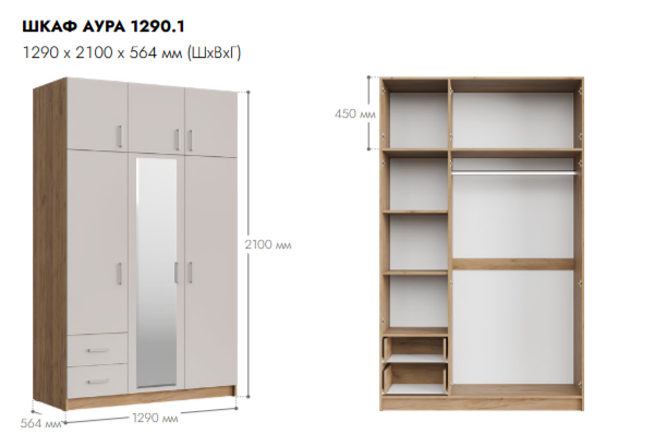 АУРА Кашемир Шкаф ШР-3 (Woodman)