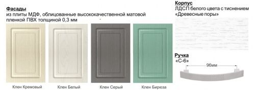 Фасад МДФ ПВХ Матовый - Клен белый, Клен серый, Клен кремовый, Клен бирюза