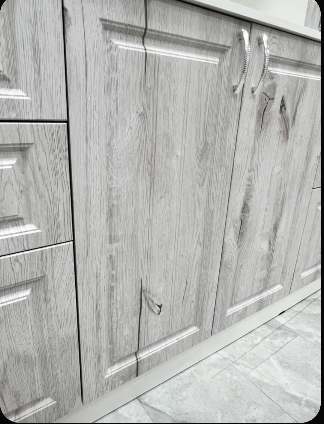 — Столешница и цоколь из ЛДСП белого цвета с тиснением «Древесные поры».