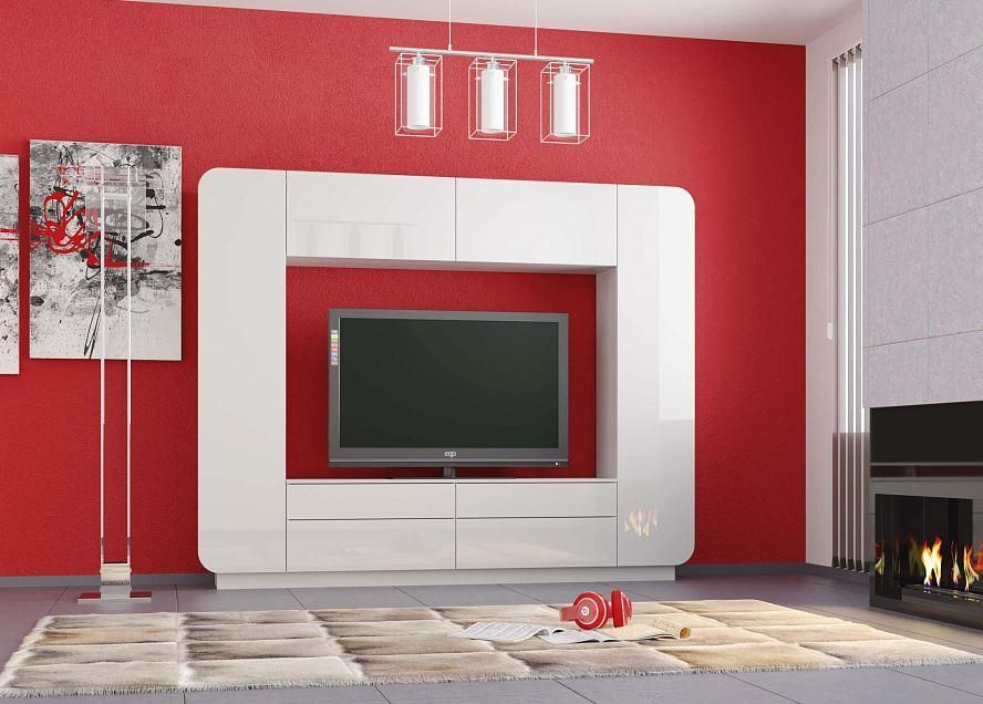 Цветовое решения в белом, глянце придают стенке отличный внешний вид, подходящий для любого оттенка интерьера.