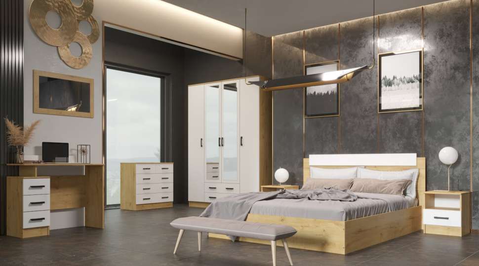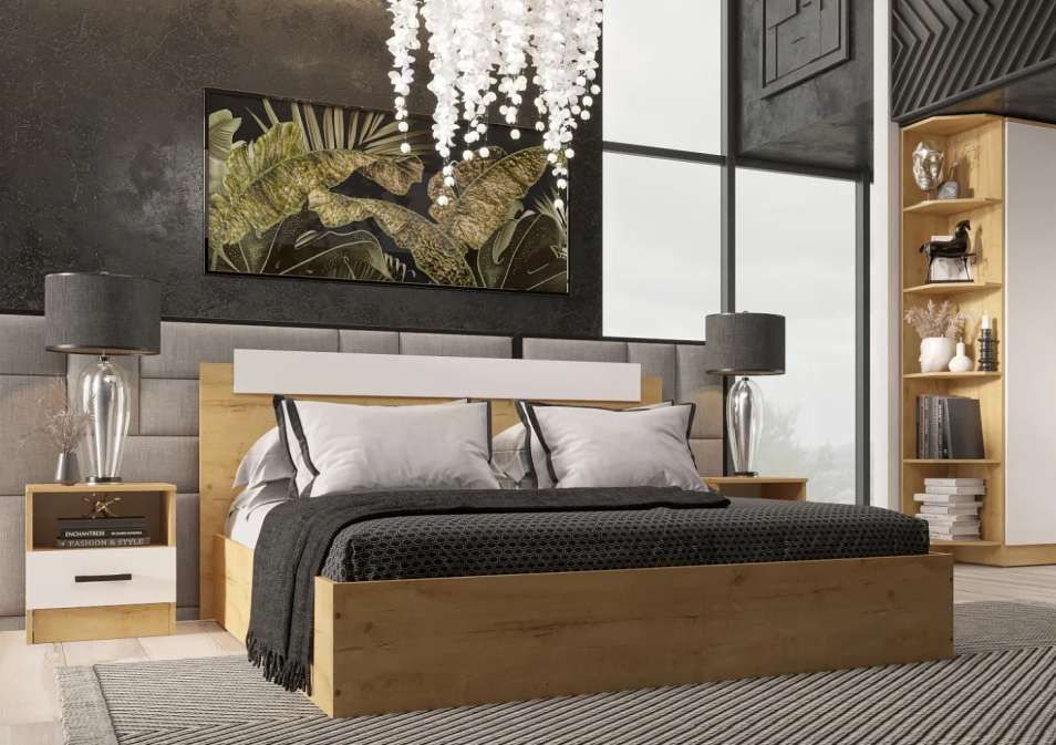 Кровать 140х200 ЭКО (Эра) Дуб Вотан/Белый
