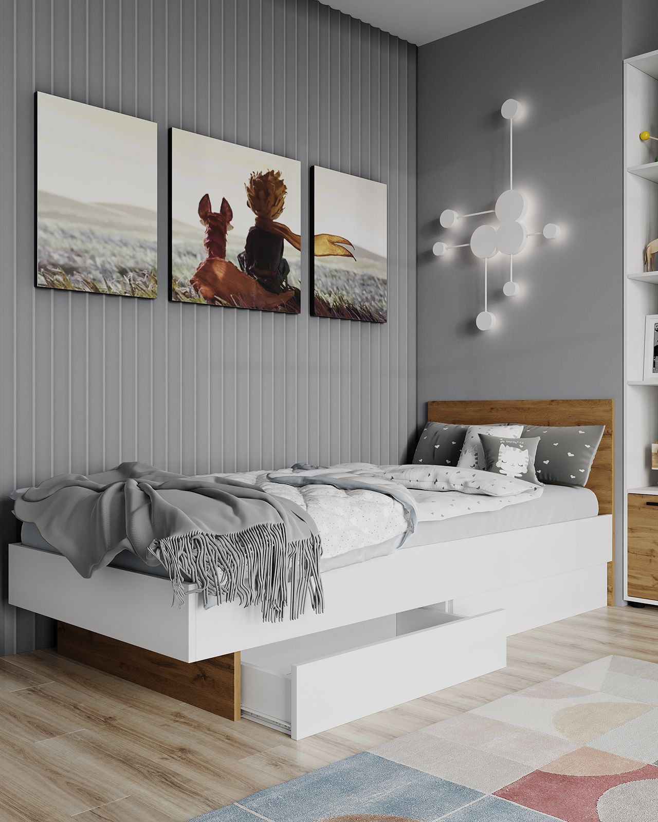 Кровать с ящиками "Сканди" 1,2м Белый/ Вотан ЛДСП (Гросс)