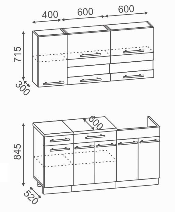 Нижние модули ВГ: 845х520(600) мм