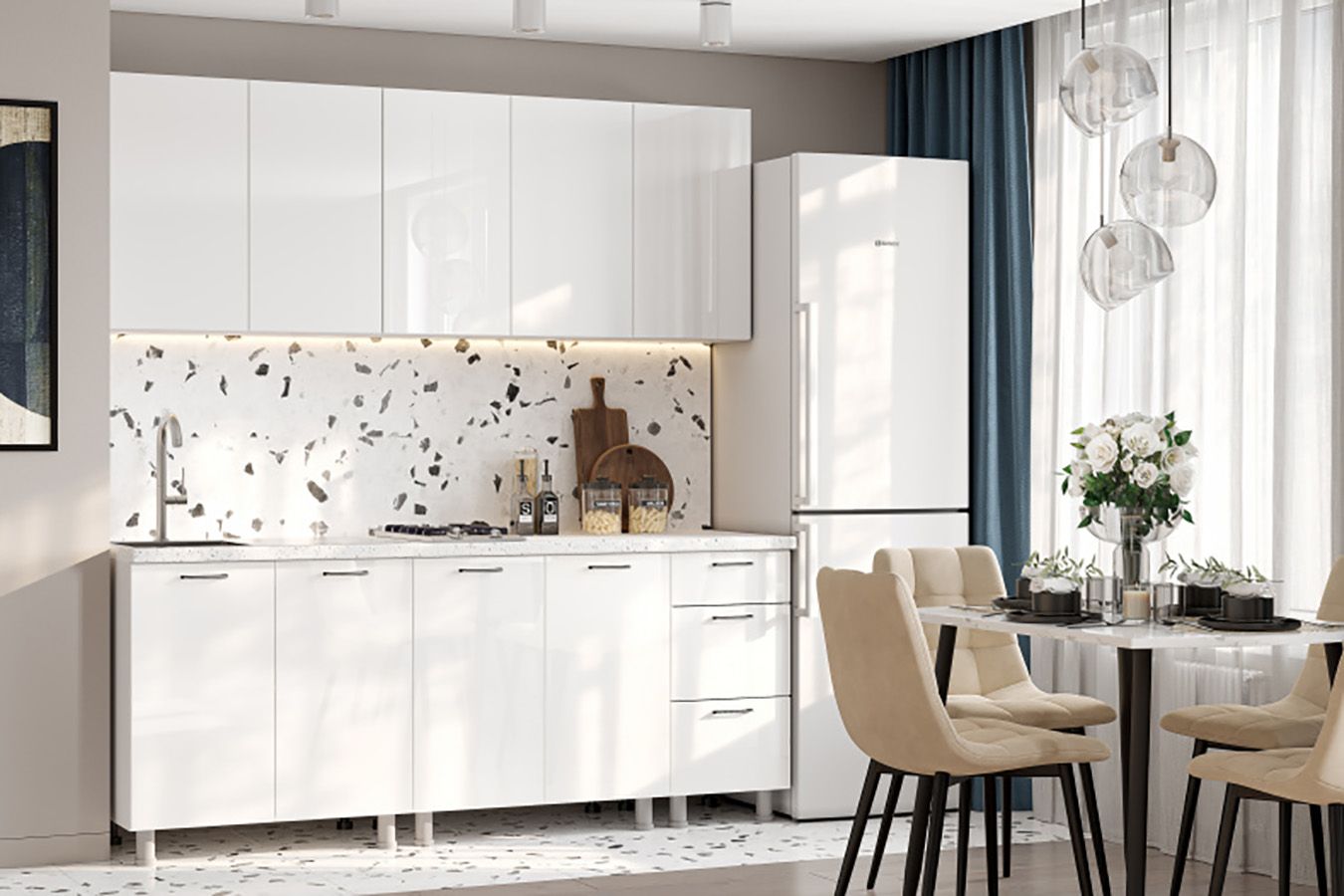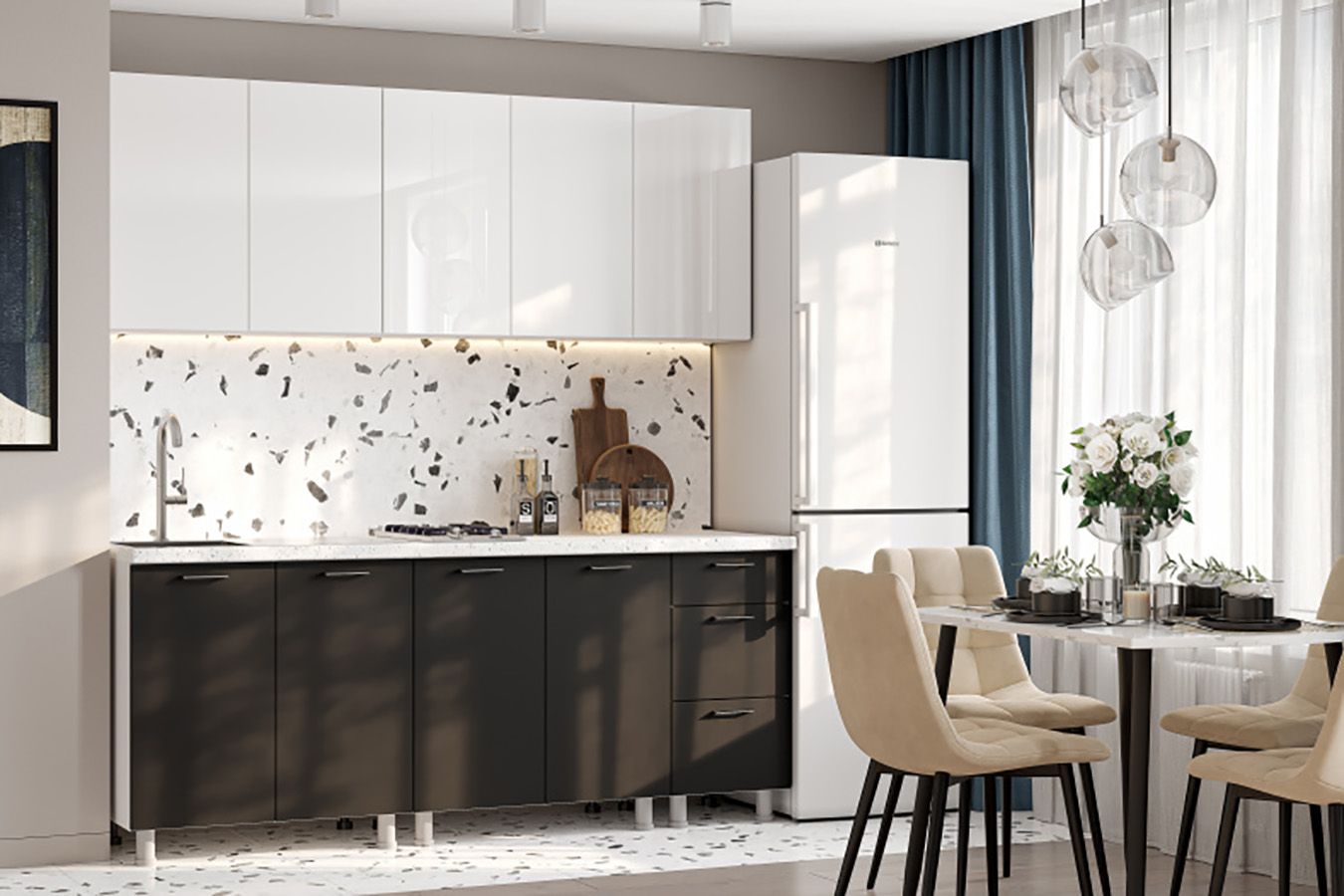 Кухня «Модерн NEW» 2 м Белый глянец / Графит ( SV)