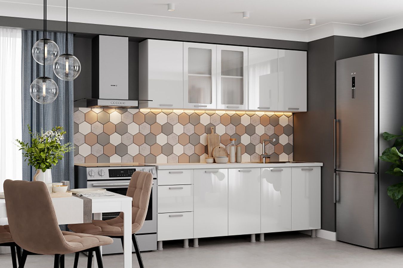 Кухня SV Модерн NEW 2000 Белый глянец Бруно/Графит