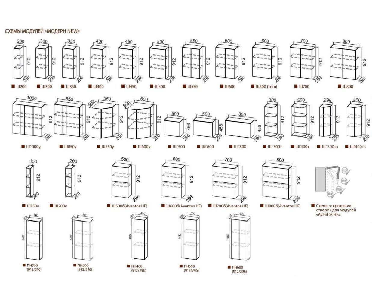Верхние модули высотой 720 мм: