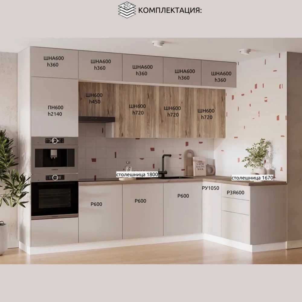 | Глубина, мм | верх. 300, нижн. 500, антресоли и пенал 576 |