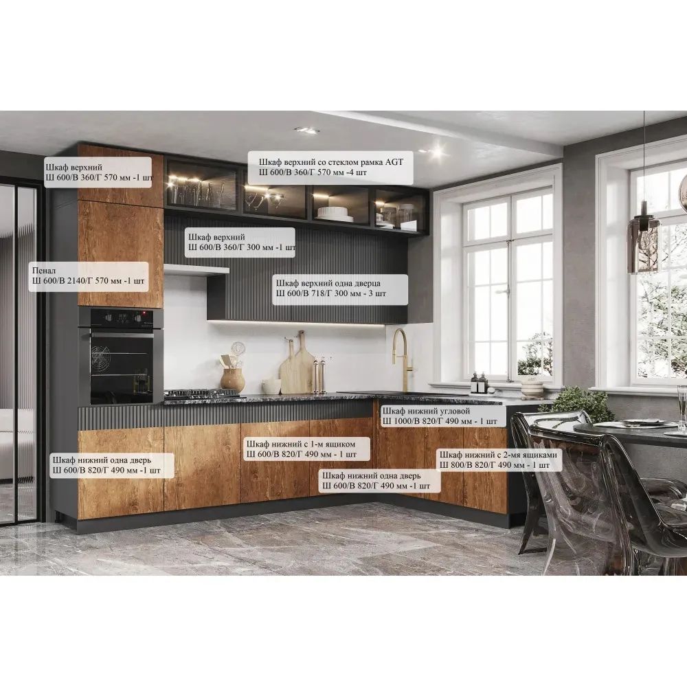 Кухня угловая "МРКГ 200/Оливия" Графит/Экзотическое дерево 3х1.8 м (МР)