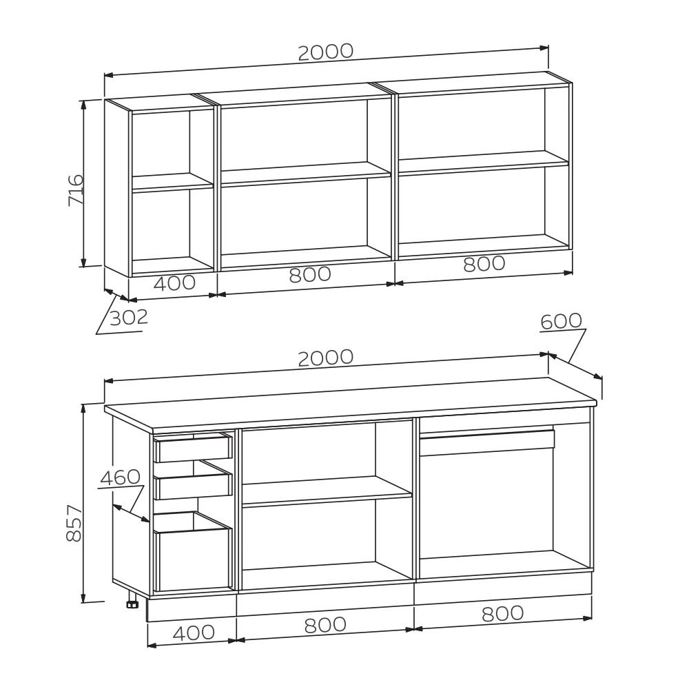 | Высота, мм | верх. 716, нижн. 819 (857 со столешницей) |