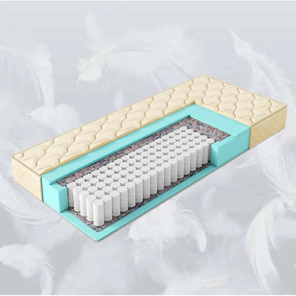 | Наполнитель матраса | Чехол из трикотажа стеганого на объемном волокне 200 гр/м2 → Пена 15 мм → Термовойлок → Независимый пружинный блок 140 мм → Термовойлок → Пена 15 мм → Усиление по периметру матраса 100 мм |