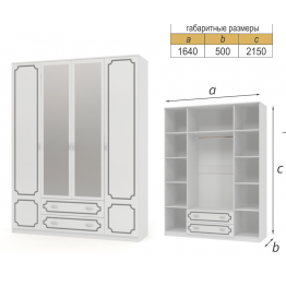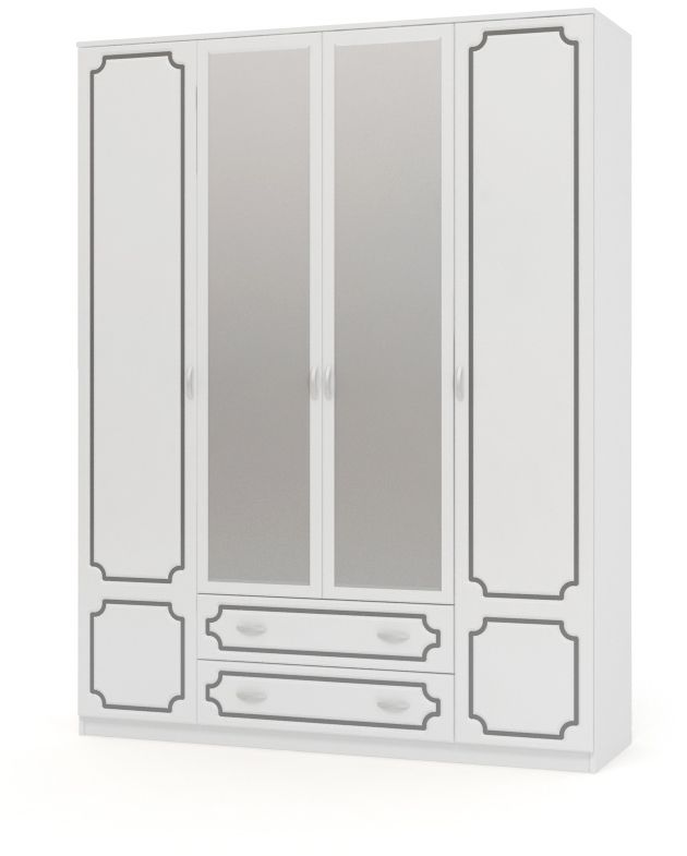 Шкаф 4-х дверный "Белый жемчуг" с зеркалами ШР 4 (Браво мебель)