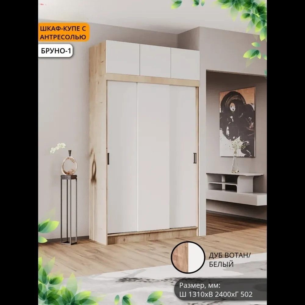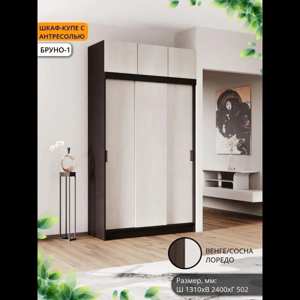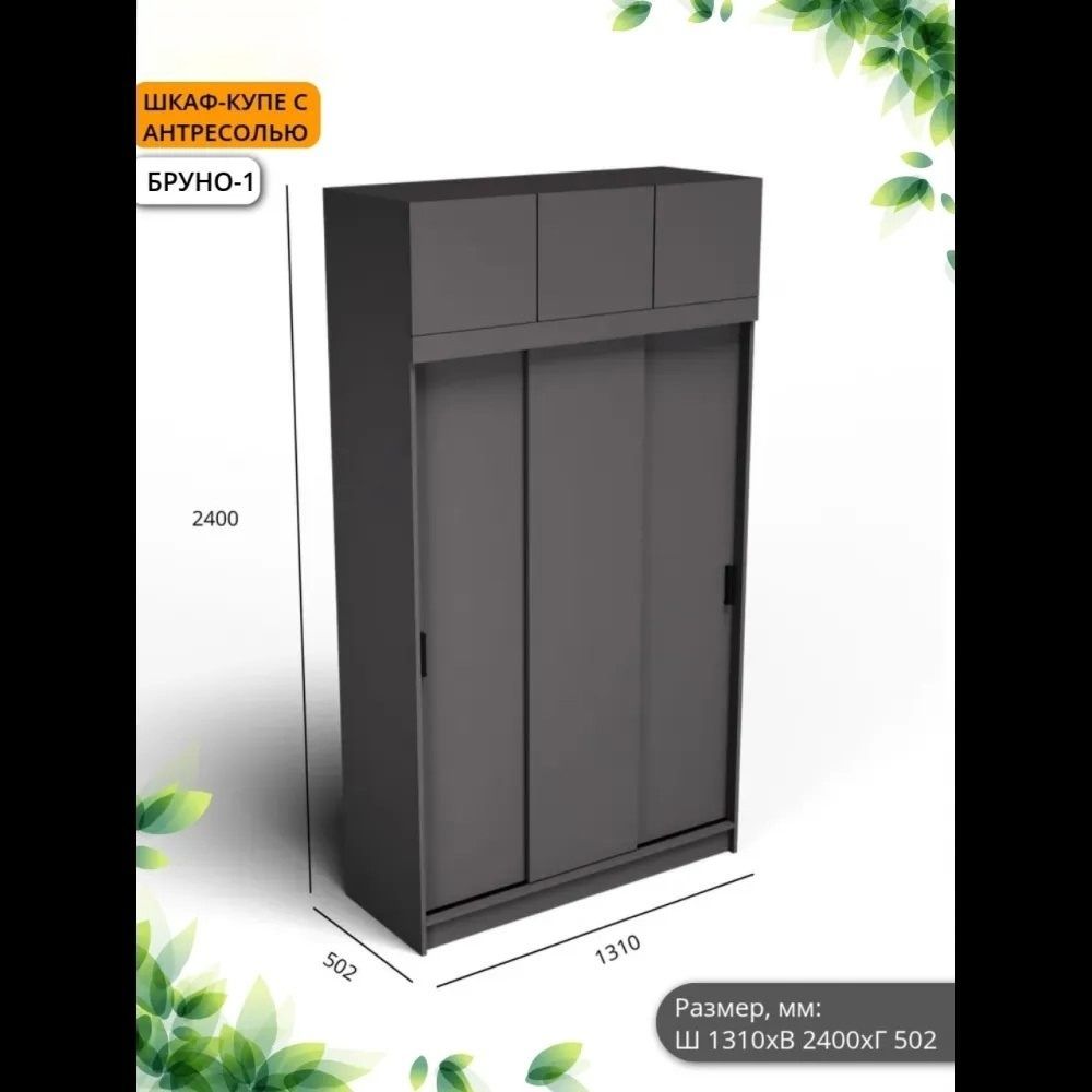 Шкаф-купе Бруно 1+ Антресоль (Комплект) Б/З МР