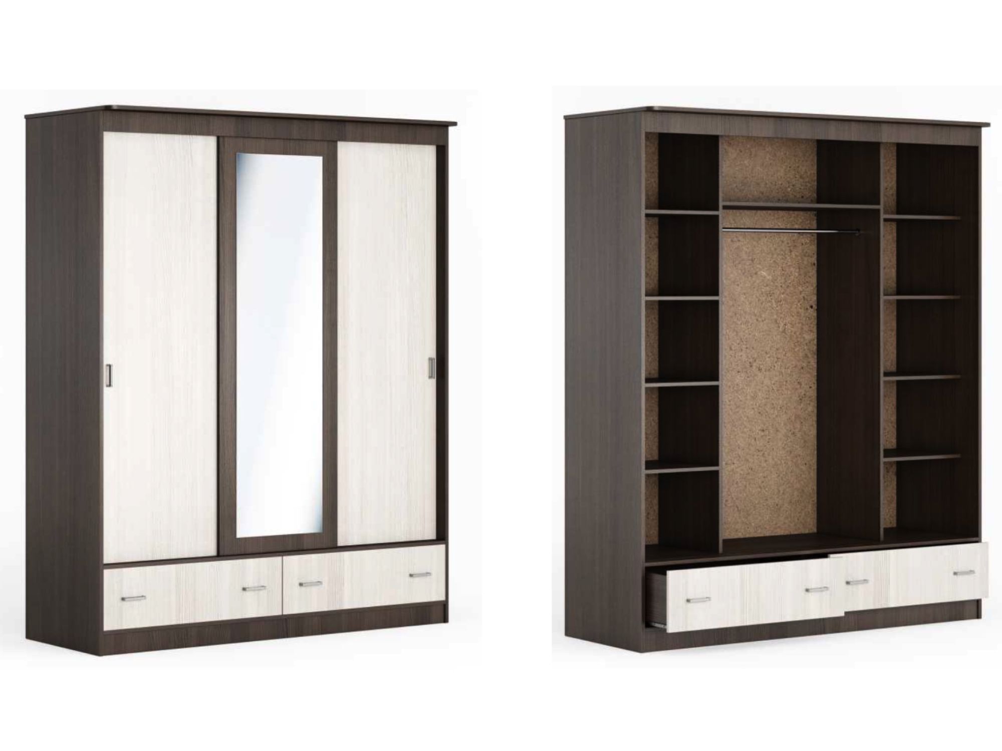 Шкаф купе 3 дверный с ящиками . Наполнение слева и справа полки , посредине штанга.