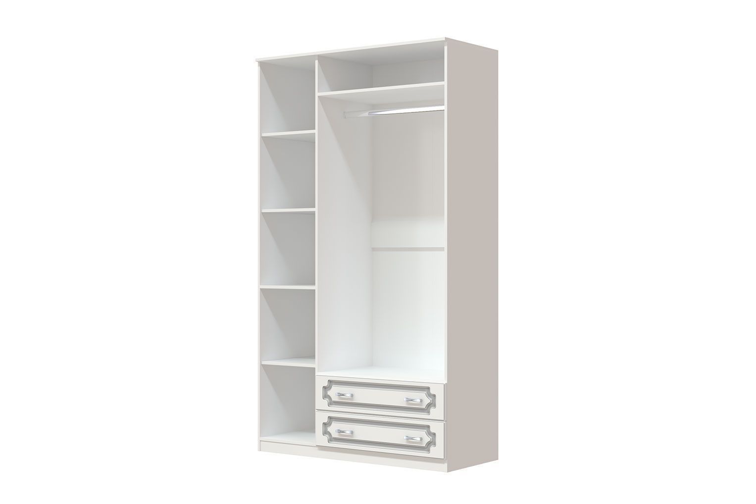 - Внутреннее наполнение: 1/3 - отделение с 5-ю вместительными полками, 2/3 - отделение со штангой.