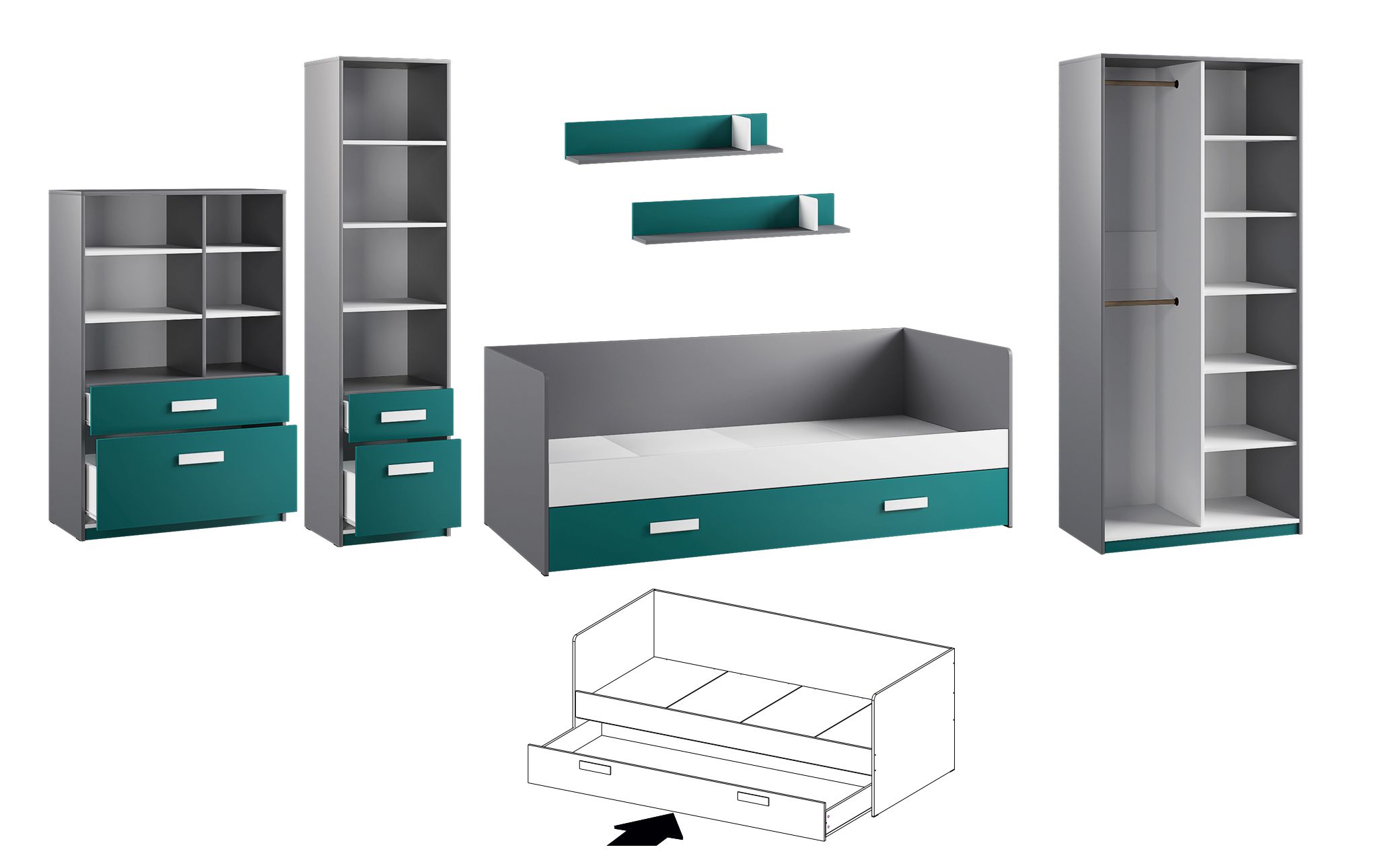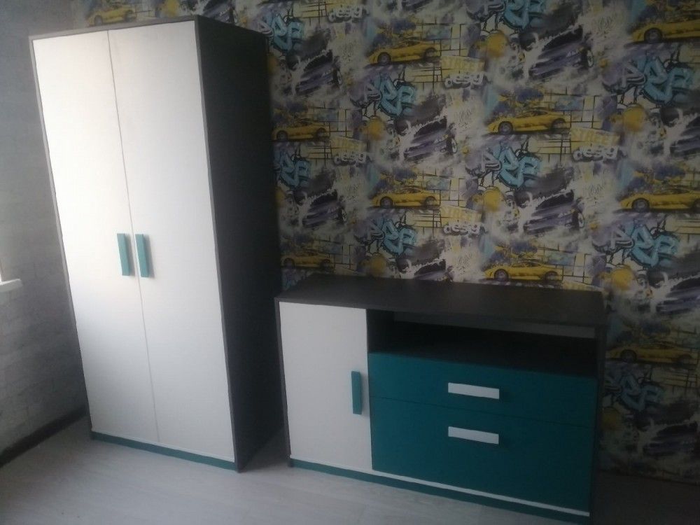 Корпус ЛДСП Графит Серый, фасад ЛДСП Белый с тиснением "Древесные поры"/Лаванда или Белый с тиснением "Древесные поры"/Океан.