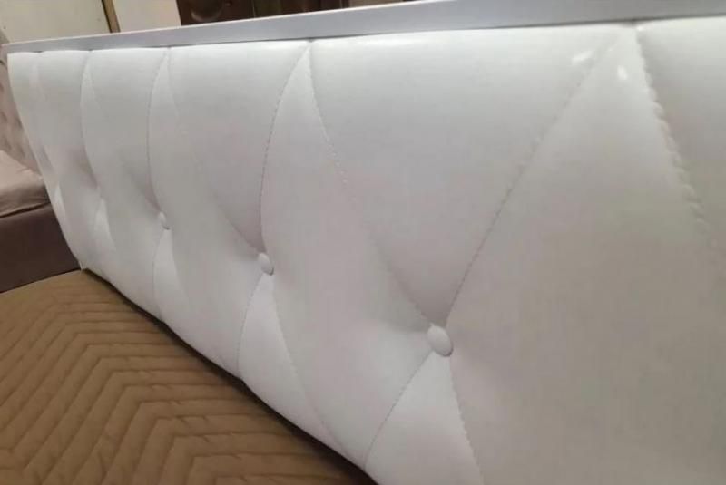 Отделка изголовья кровати - экокожа, декорирована каретной стяжкой с пуговицами в цвет