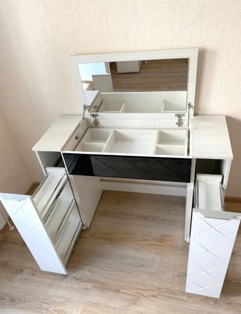Откидная крышка стола с зеркалом, ящик с отделениями для хранения
